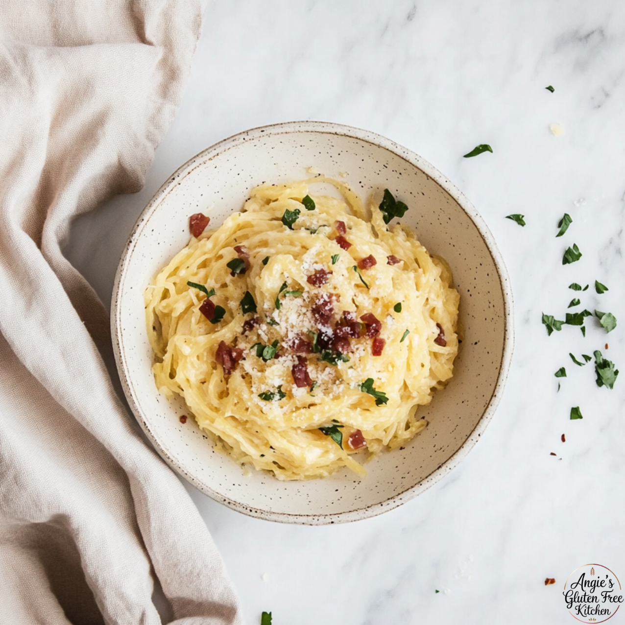 A lighter twist on a classic! This Spaghetti Squash Carbonara swaps traditional pasta for tender roasted spaghetti squash strands, keeping it gluten-free and nutrient-rich. The silky sauce made with eggs, garlic, and creamy coconut or cashew milk coats each strand beautifully, while crispy pancetta (or prosciutto) adds a savory depth.